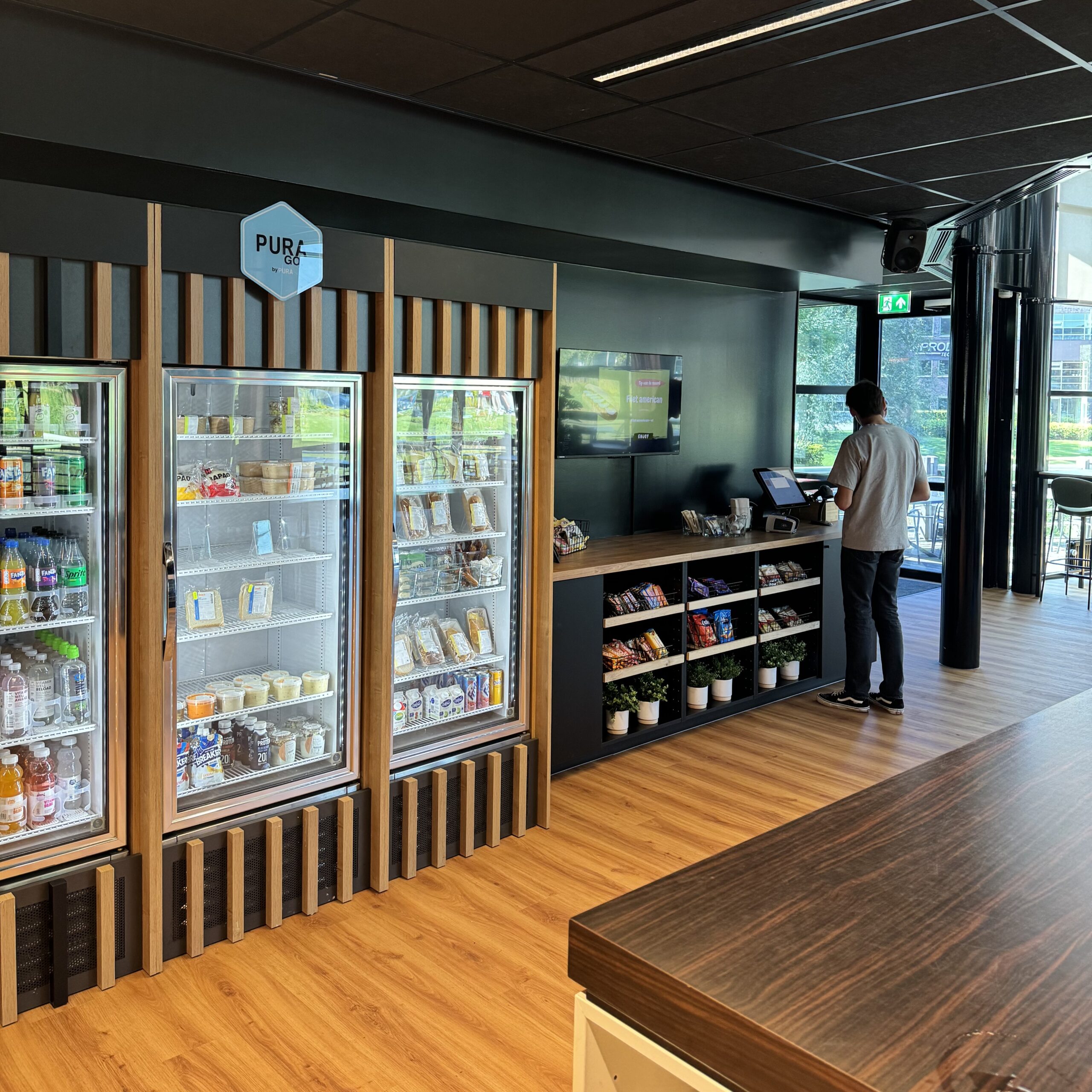 Met PURA GO haal je een volledig geautomatiseerde cateringoplossing in huis die 24/7 beschikbaar is. Of het nu gaat om vroege vogels, late diensten of nachtwerkers: medewerkers hebben altijd toegang tot een gevarieerd en gezond aanbod. Altijd vers, altijd binnen handbereik.